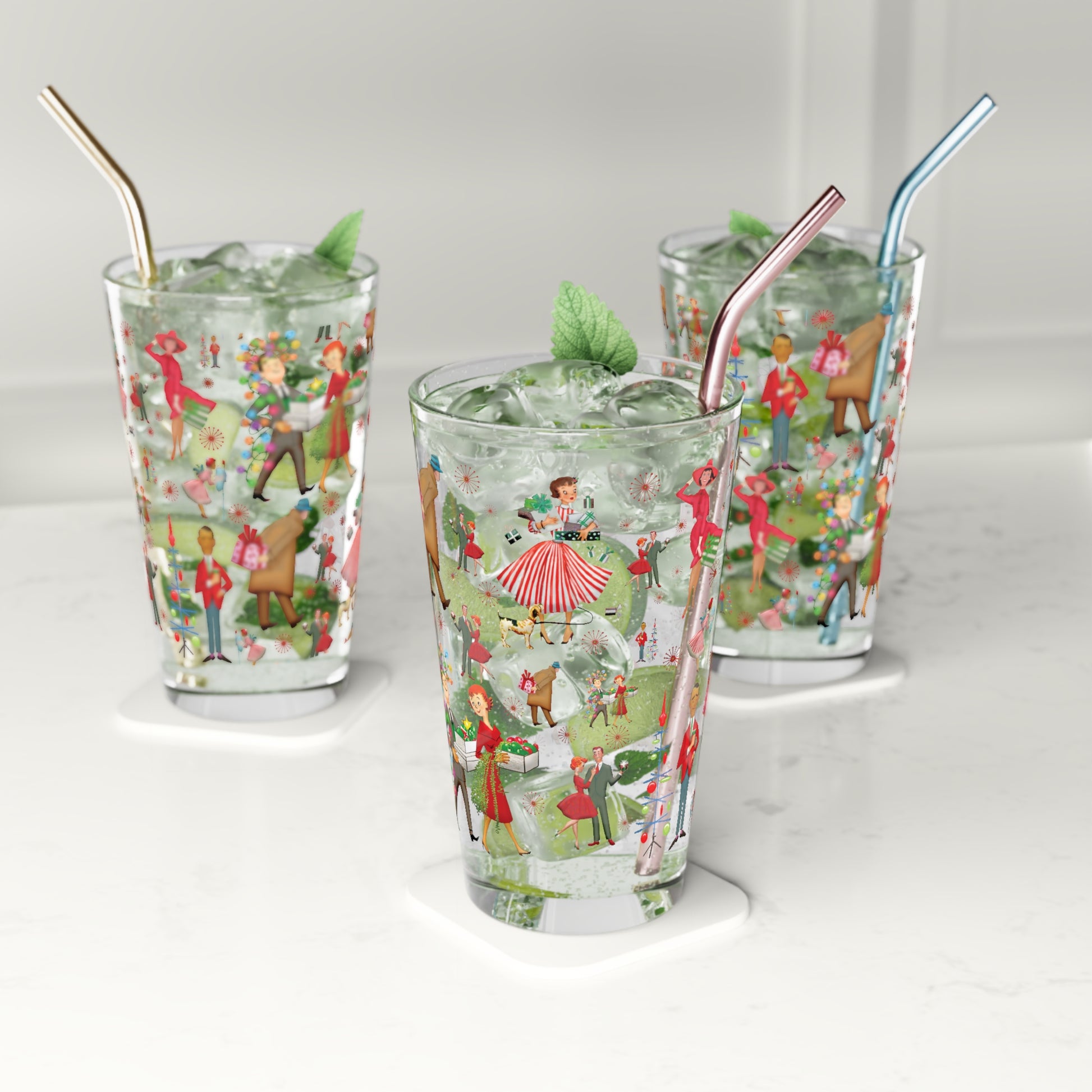 Material: Made from clear glass, offering a timeless and elegant look. BPA Free: Ensuring your drinks remain safe and free from harmful chemicals. Hand Wash Only: To preserve the vintage design and ensure longevity, we recommend hand washing only. Durable Construction: Crafted with high-quality materials, this pint glass is built to last, providing you with lasting enjoyment. Perfect for: Holiday Entertaining: Serve your guests in style with this vintage pint glass at your holiday gatherings. Its retro design adds a festive touch to any table setting. Everyday Use: Enjoy your favorite beverages in a glass that combines functionality with nostalgic charm. Ideal for water, soda, beer, or any drink of your choice.